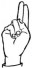 На ћирилици написано ПЕРИША ВЕШКОВАЦ састоји се из 14 слова [?]. Исписано ћириличном једноручном азбуком за глувонеме: